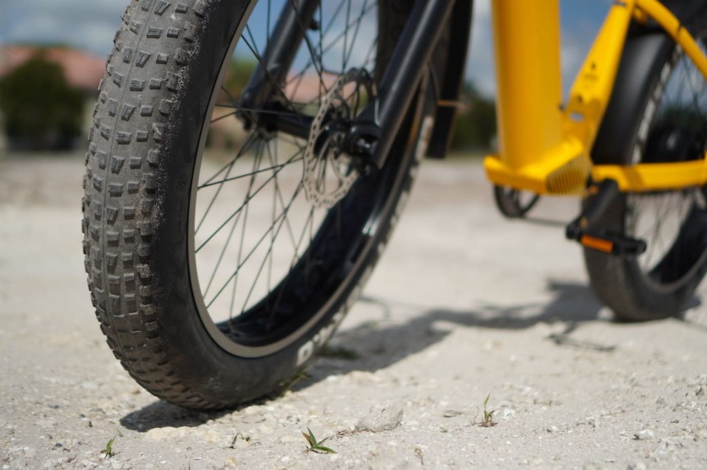 There’s nothing terribly special about the tires, they’re commonly available CST BFT 26 x 4.0 fat tires. But they certainly get the job done, as I experience on a combination of sand and dirt, as well as some fun excursions on mulched nature trails.